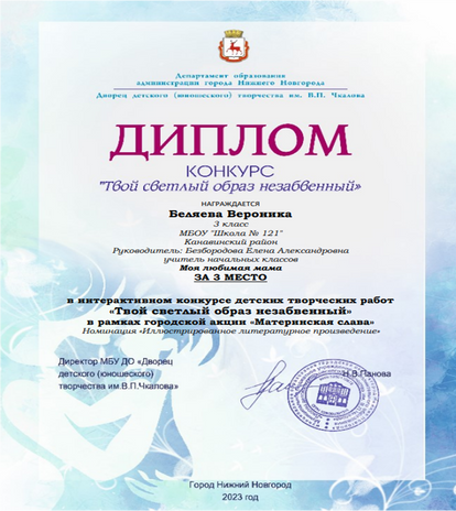 Призёр городского интерактивного конкурса "Твой светлый образ незабвенный" в рамках городской акции "Материнская слава"