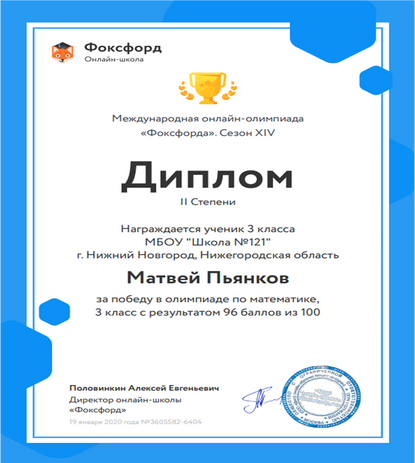 Победители и призёры олимпиад на платформе "Фоксфорд"